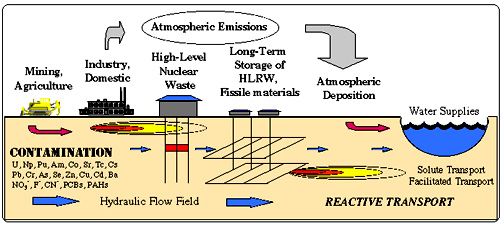in Figure 1. Contaminant species may react strongly with soil and aquifer